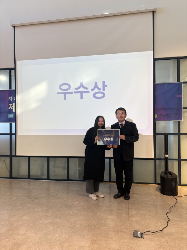 우리 연구실의 막내 신소연 학생이 차의과학대학교 생명과학대학 학술제에서 우수상을 수상하였습니다. 이번 학술제에서 신소연 학생은 그동안 성실하게 수행해 온 연구 내용을 바탕으로 논리적이고 명확한 발표를 진행하였으며, 연구의 완성도와 학문적 잠재력을 높이 평가받아 우수상…